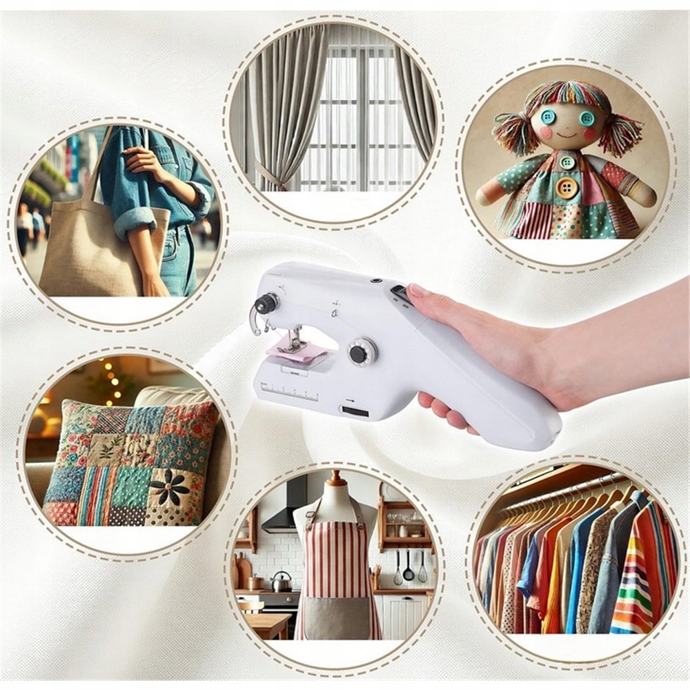 Міні швейна машина, USB -джерело живлення/батареї ергономічна біла ручка