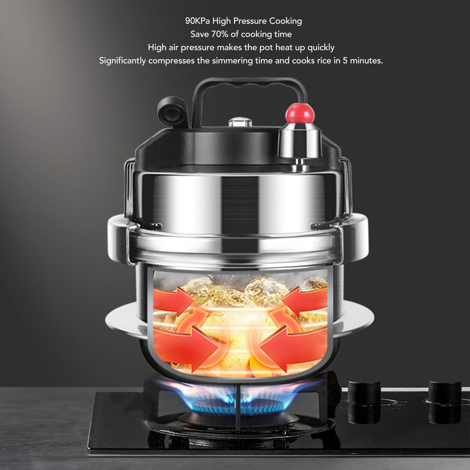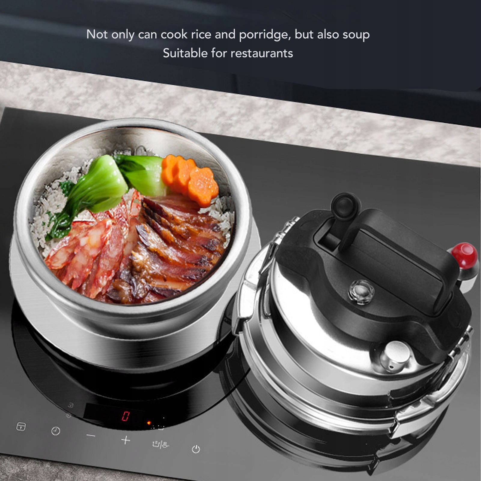 4. ЕКОНОМІЯ ЧАСУ: ви можете заощадити до 70% часу приготування за допомогою тушкованої страви під високим тиском 90 кПа. Високий тиск повітря призводить до швидкого нагрівання каструлі, що значно скорочує час приготування. рис можна зварити за 5 хвилин.