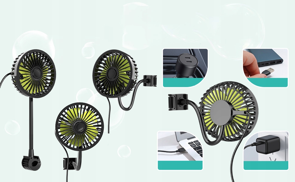 Використовуйте цей вентилятор у автомобілях (позашляховик, вантажівки, седани), коляски, на столах або стінах. Ідеально підходить для сну, роботи, навчання або пригод на свіжому повітрі.