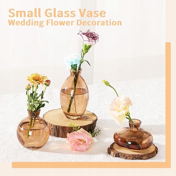 - Багатофункціональна прикраса: цей набір 3 скляні вази для квітів – ідеальний вибір для тих, хто любить мати свіжу вазу з квітами всередині. Ці міні-вази виготовлені з високоякісного скла, що робить їх міцними та довговічними. Вази гладкі та круглі, а потовщене скло стабілізує центр ваги, тому ваза не перекинеться легко