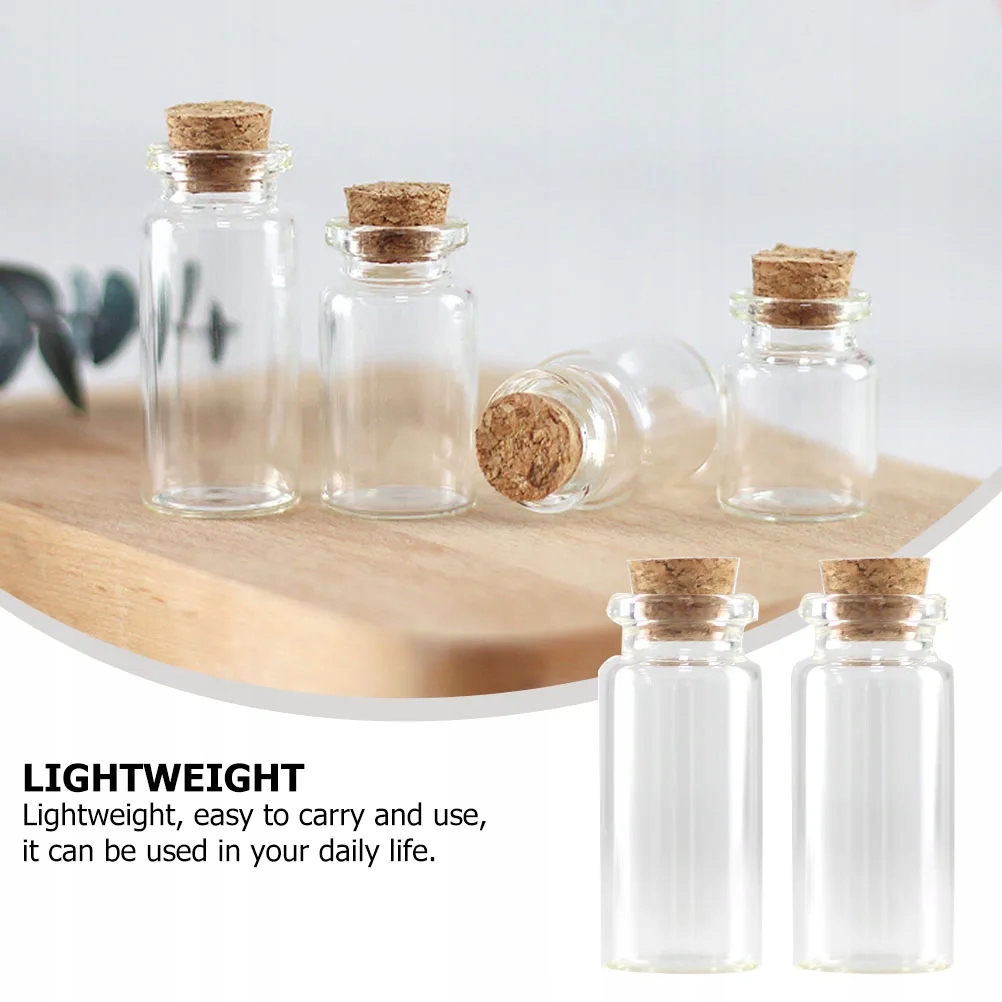Це креативна коркова пляшка, виготовлена з матеріалів, прозорих і яскравих, з хорошим блиском, підходить для пляшок DIY та інших невеликих прикрас. У прозорому корпусі пляшки добре видно дрібні аксесуари всередині. Це ідеальний аксесуар для саморобки та контейнер для зберігання дрібних предметів, який добре задовольнить ваші потреби.