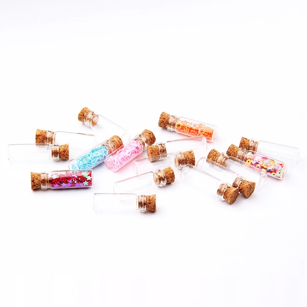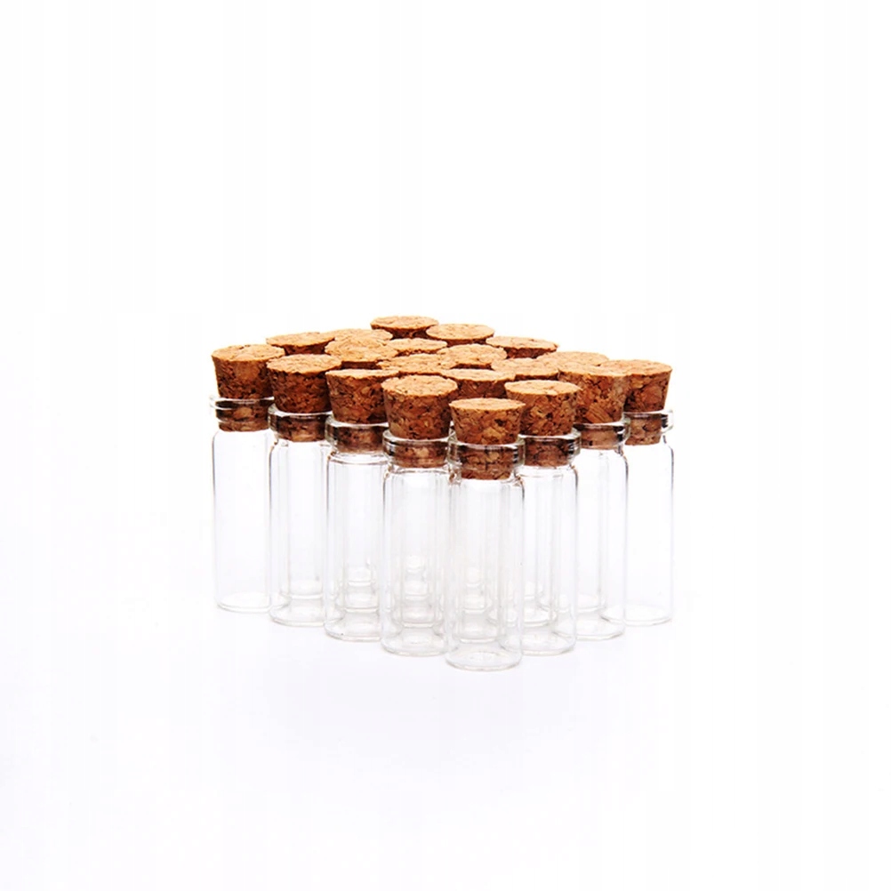 Це упаковка з міні-скляної пляшки з дерев’яною корковою пробкою, яку можна наповнювати повідомленням, попурі, желейними кульками, акриловими каменями та дорогоцінним камінням, пелюстками квітів, прикрашати стрічкою або просто наповнювати піском, також підходить для Зроби сам як намисто з підвіскою, дрейфуючу пляшечку з бажаннями або пляшечку для духів. Крім того, він підходить для прикраси або відправки в якості подарунка друзям.