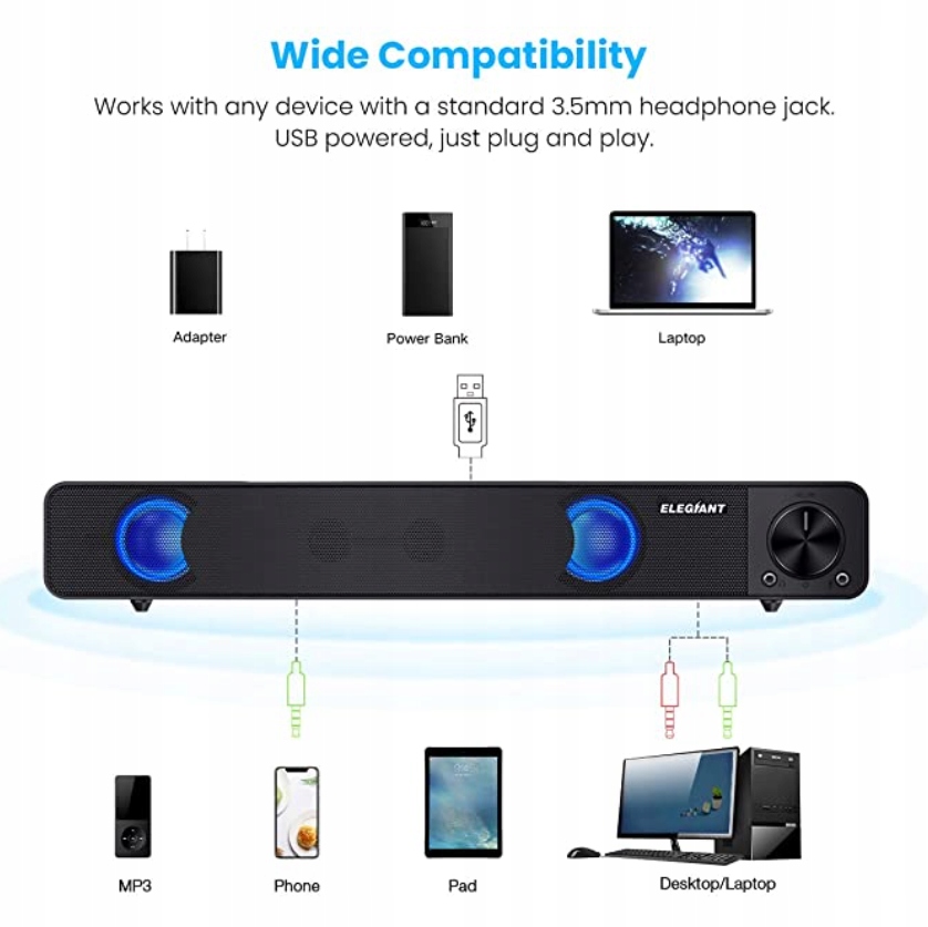Elegiant SR200 - це елегантний динамік комп'ютера (звукова панель) з високою потужністю (2x3w), керованою лише однією кнопкою.