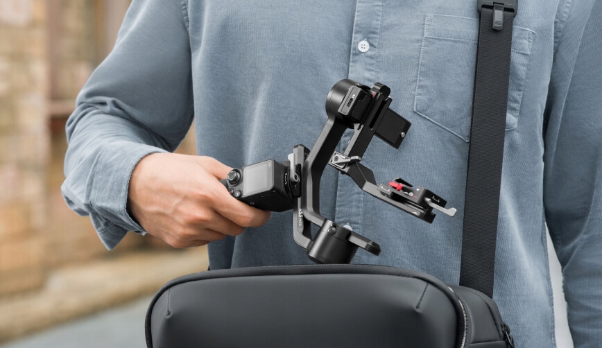 Використовуйте революційні рішення для вертикального запису. Вам більше не потрібно використовувати додаткові аксесуари для створення ідеальних матеріалів для ваших соціальних мереж! Просто прикріпіть стандартну швидкознімну пластину до вертикального стабілізатора. І це все! Крім того, у вертикальному режимі RS 3 Mini пропонує більший кут повороту кардана (порівняно з портретними режимами інших пристроїв), що забезпечує майже такий самий досвід керування, як і в горизонтальному режимі. Ви також можете насолоджуватися більш зручним записом у вертикальному режимі, підвісному та ліхтарику.