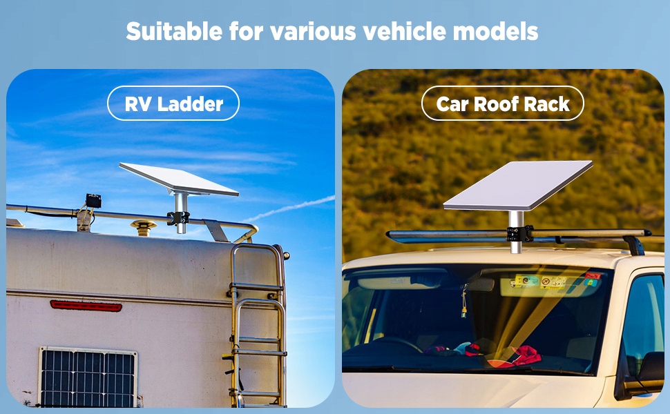 стабільне з'єднання з Starlink: Щоб переконатися, що наш продукт може бути міцно встановлений на сходах або стовпах, ми пропонуємо затискачі для труб та стовпів з нержавіючої сталі з діаметром від 22 до 28 мм (0,86–1,1 дюйма), завдяки чому він може використовувати в різних місцях, таких як кемпер, полюс, багажник на даху, яхту, кемпер або кемпінг.