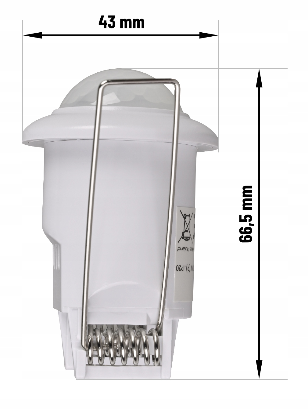 Компактний інфрачервоний датчик, призначений для монтажу на стелі та впритул. Завдяки розширювальному кріпленню датчик кріпиться стабільно, пристосовуючись до поверхні, до якої він кріпиться. Видимий елемент виглядає естетично, видимий елемент ідеально гармонує зі стелею. Прилад оснащений PIR-датчиком, фотодіодом і регулятором, який дозволяє автоматизовано керувати пристроєм, враховуючи такі параметри, як інтенсивність світла та час очікування.