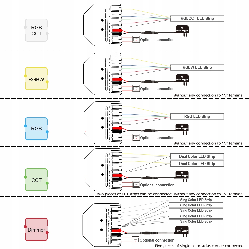 MINI Sterownik WiFi 5 w 1 do taśm pasków LED RGB CCT ściemniacz TUYA Smart