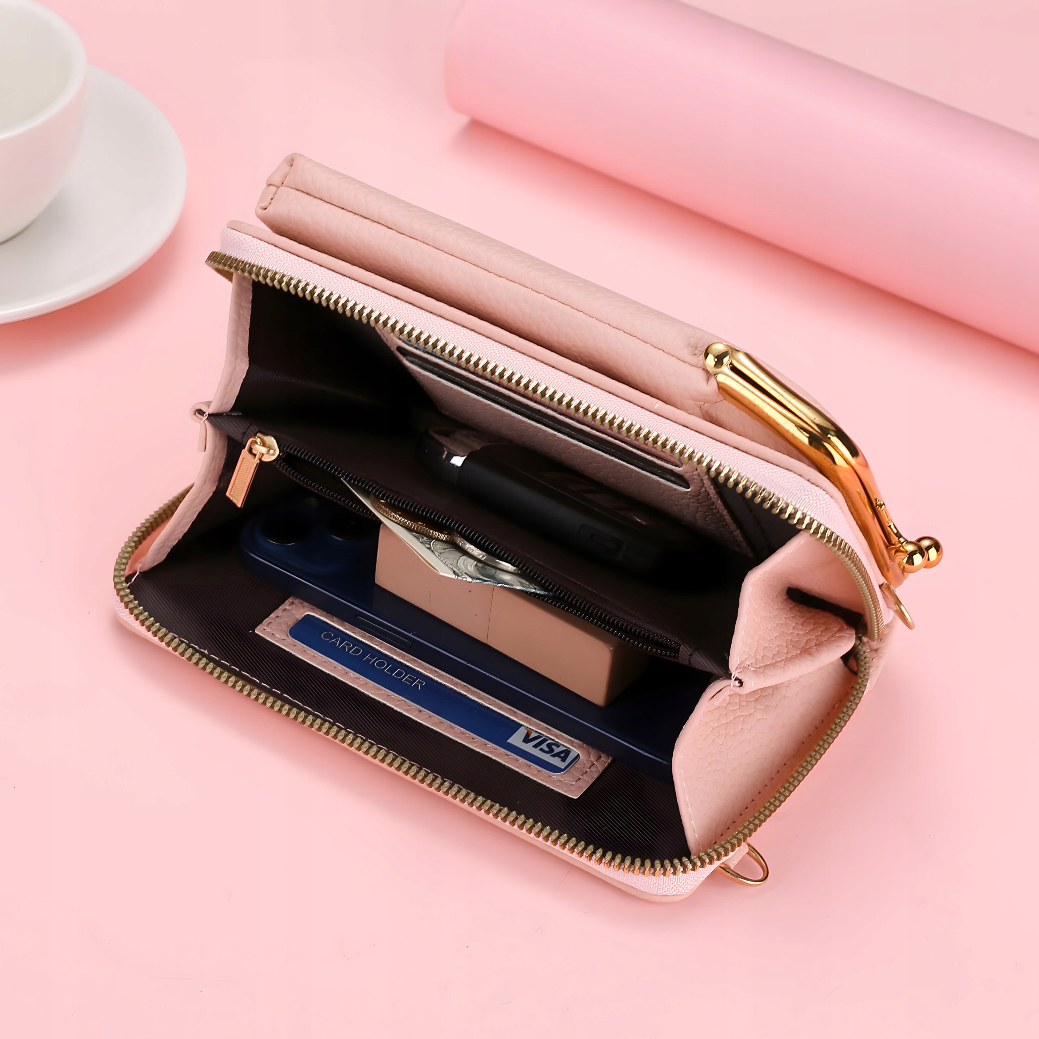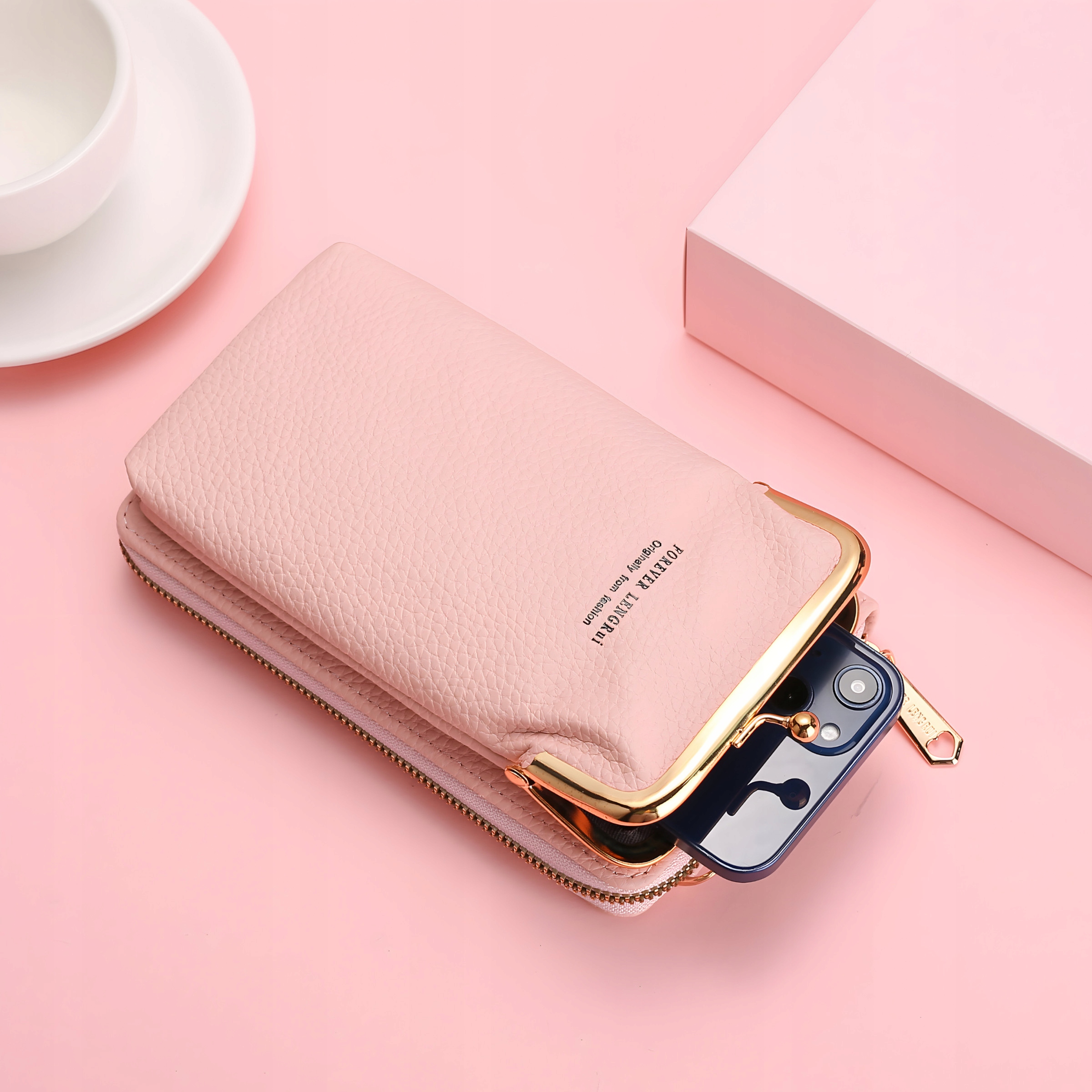 МІНІ КЛАТЧ ДЛЯ ТЕЛЕФОНУ ГАМАНЕЦЬ РОЖЕВА ЖІНОЧА СУМКА 2 В 1