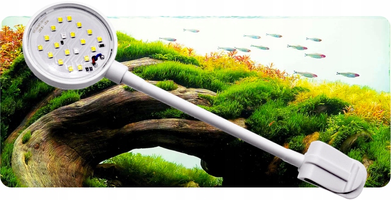 Сучасне міні-світлодіодне освітлення підходить для всіх нано акваріумів, акваріумних куль або палюдаріумів. Освітлення маленьких акваріумів або заокруглених акваріумних кульок часто дуже складне, але це світло усуває цю проблему завдяки своїй малій вазі, методу подвійної установки та гнучкому корпусу.