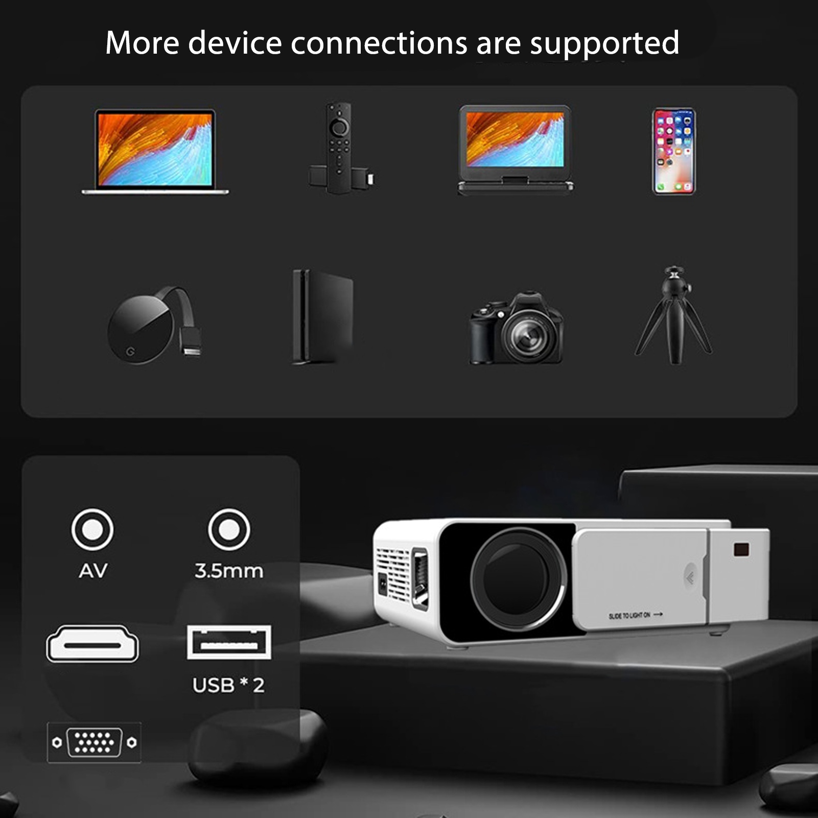 1. Розсіювання тепла: проектор використовує приховане охолодження за допомогою потоку повітря, що циркулює в турбіні. Система комплексно оптимізує криву повітроводу, значно покращує ефект охолодження та забезпечує стабільну та стабільну роботу системи. 2. З динаміком: проектор T5 має власні динаміки, підтримує навушники, стереоз'єднання, об'ємний звук і звуковий ефект удару. 3. Підтримка бездротового дротового одноекранного мобільного планшета: міні-портативний проектор підтримує бездротовий і дротовий одноекранний мобільний планшет. 4. Новий індивідуальний інтерфейс користувача T5: міні-світлодіодний проектор T5 має більш свіжий стиль і більш інтуїтивно зрозумілий досвід. 5. Інтимний подарунок: міні-проектор T5 підходить як подарунок родині, сусідам, друзям і колегам на будь-яку подію та свято.