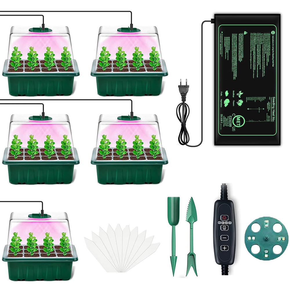 Пропагатор кімнатної теплиці з лампою для рослин, нагрівальним килимком, набором із 5 мініатюрних наборів для розмноження в теплиці з таймером 4/8/12/18 годин, регульованою яскравістю