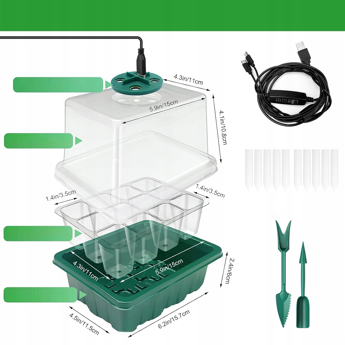 МІНІ ТЕПЛИЦЯ LED 2x USB Теплиця Регульована вентиляція SEEDLANDS 24 CELLS