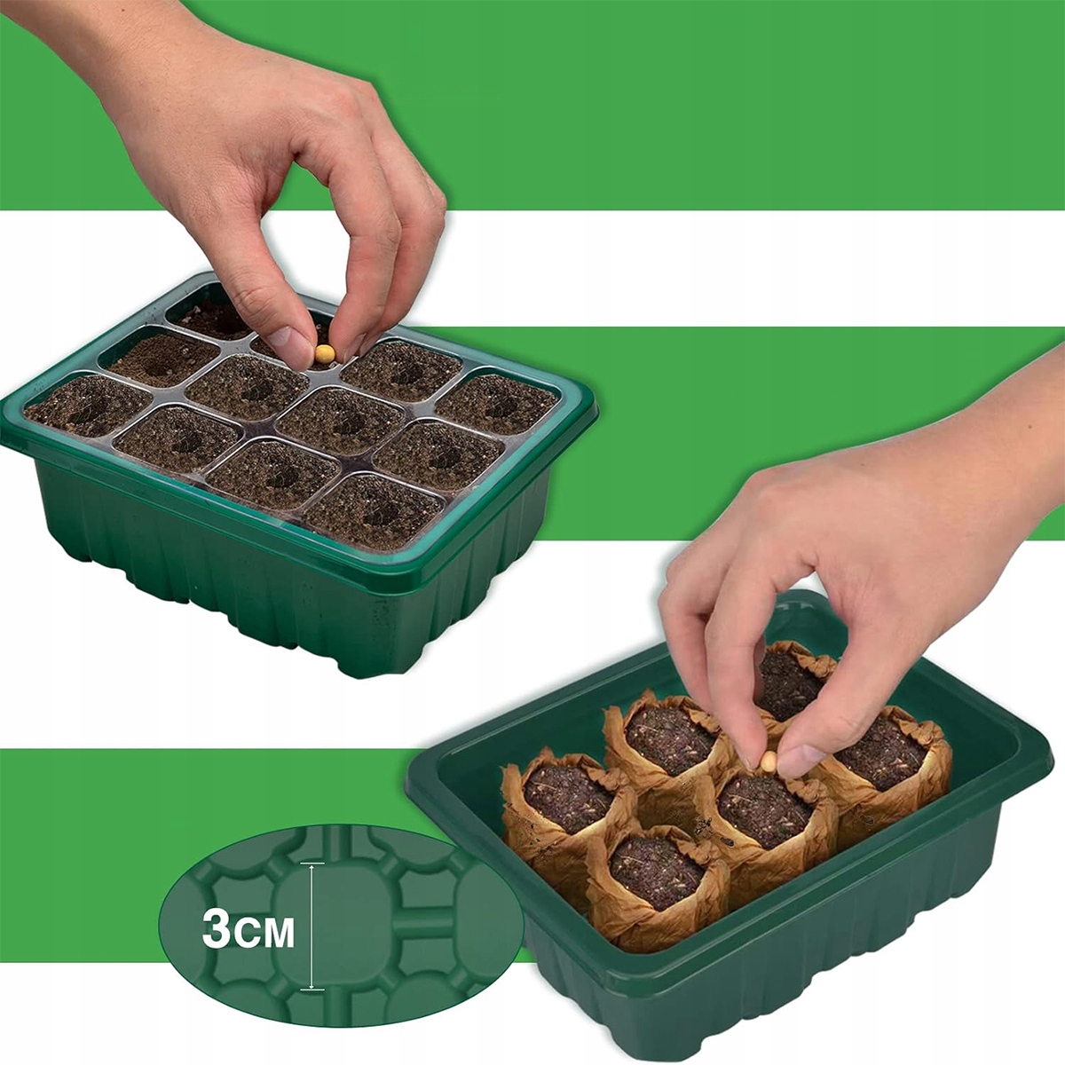 ☘️【Високоякісний матеріал】Плантура з 12 відділеннями для розсади виготовлена з високоякісного поліпропілену (PP), який є нетоксичним, екологічно чистим, міцним, стійким до пошкоджень і довговічним для тривалого використання. Розділений на однакові квадрати зі стороною 3,8 см і глибиною 5 см, ідеально підходить для дрібних або великих насіння квітів, овочів, фруктів та інших рослин. Його можна мити та використовувати повторно, щоб продовжити термін служби.