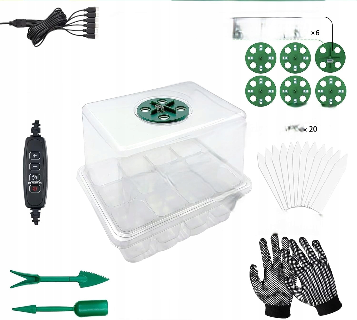 - 6 × міні теплиця з кришкою (прозора, піднята)