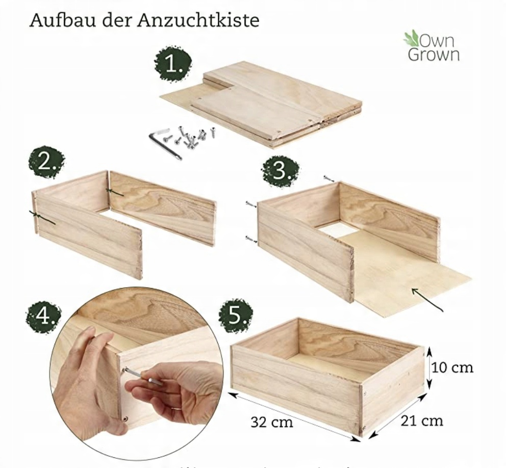 - ? Ідеальний подарунковий набір для саду: красивий набір для дітей з дерев'яною коробкою (32 х 21 х 10 см для складання), грунтом для вирощування рослин, насінням, інструкцією в солодкій подарунковій коробці. Під наглядом 5 років.