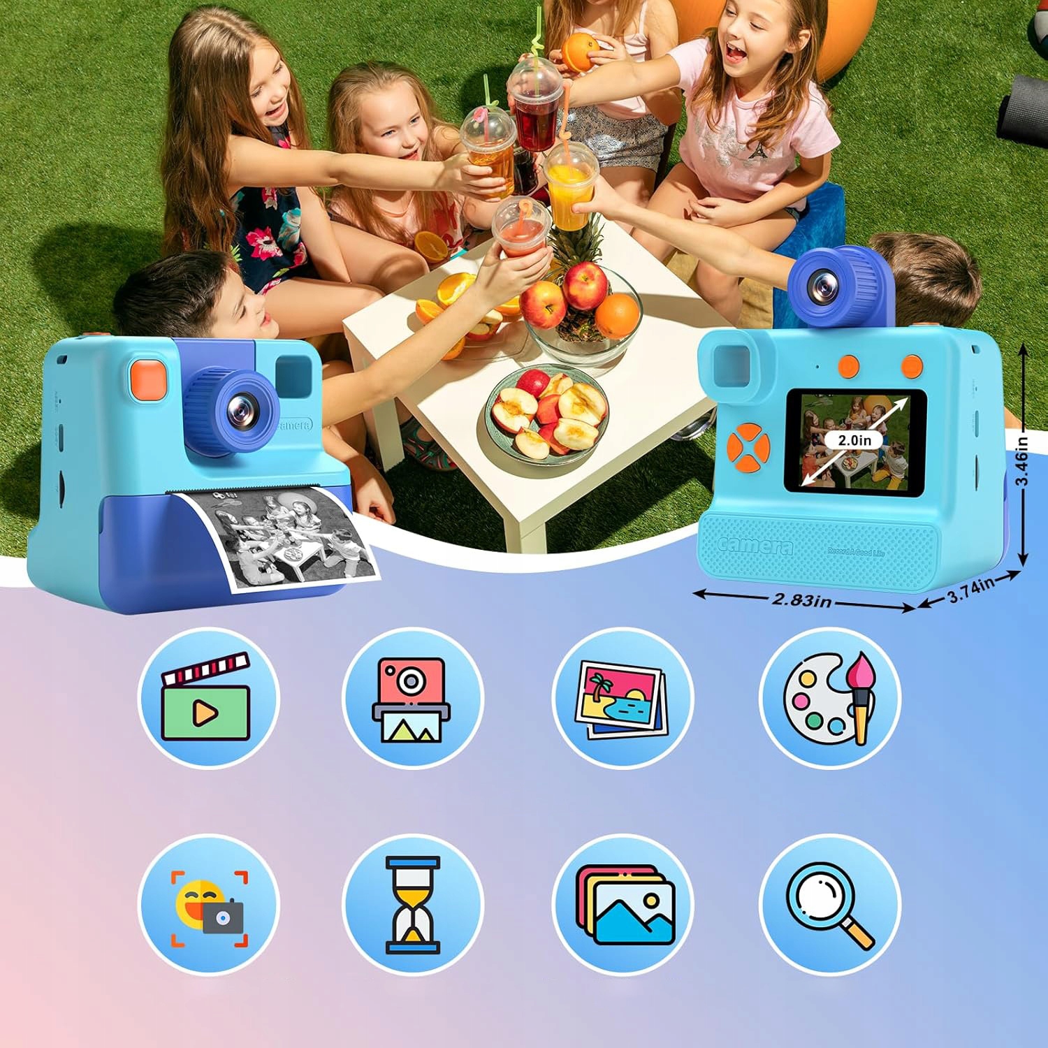 Ця дитяча камера використовує технологію термодруку, щоб друкувати лише за 3 секунди, забезпечуючи чорно-білу фотографію (діти можуть створювати кольорові відбитки самостійно), тож немає потреби замінювати чорнильні картриджі чи клопоту. У набір входять 3 рулони паперу (зручні для шкіри та легко замінні), що дозволяє роздрукувати до 180 фотографій. За допомогою цієї миттєвої камери для дітей діти можуть друкувати скільки завгодно фотографій.
