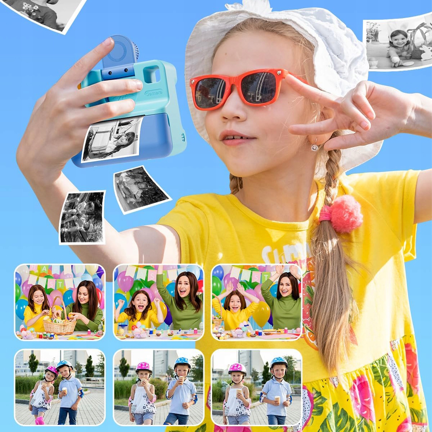 Ця миттєва камера для дітей пропонує функцію миттєвого друку, що дозволяє швидко друкувати кольорові та чорно-білі фотографії одночасно. Наш набір міні-камери включає 3 аркуші паперу, карту пам’яті на 32 ГБ, шнурок, кабель USB Type-C і набір кольорових олівців (5 кольорів). Діти можуть використовувати цю камеру, щоб розкрити свою уяву та творчі здібності, створюючи фотографії, які вони хочуть самостійно. Підходить для дітей віком 3-12 років.