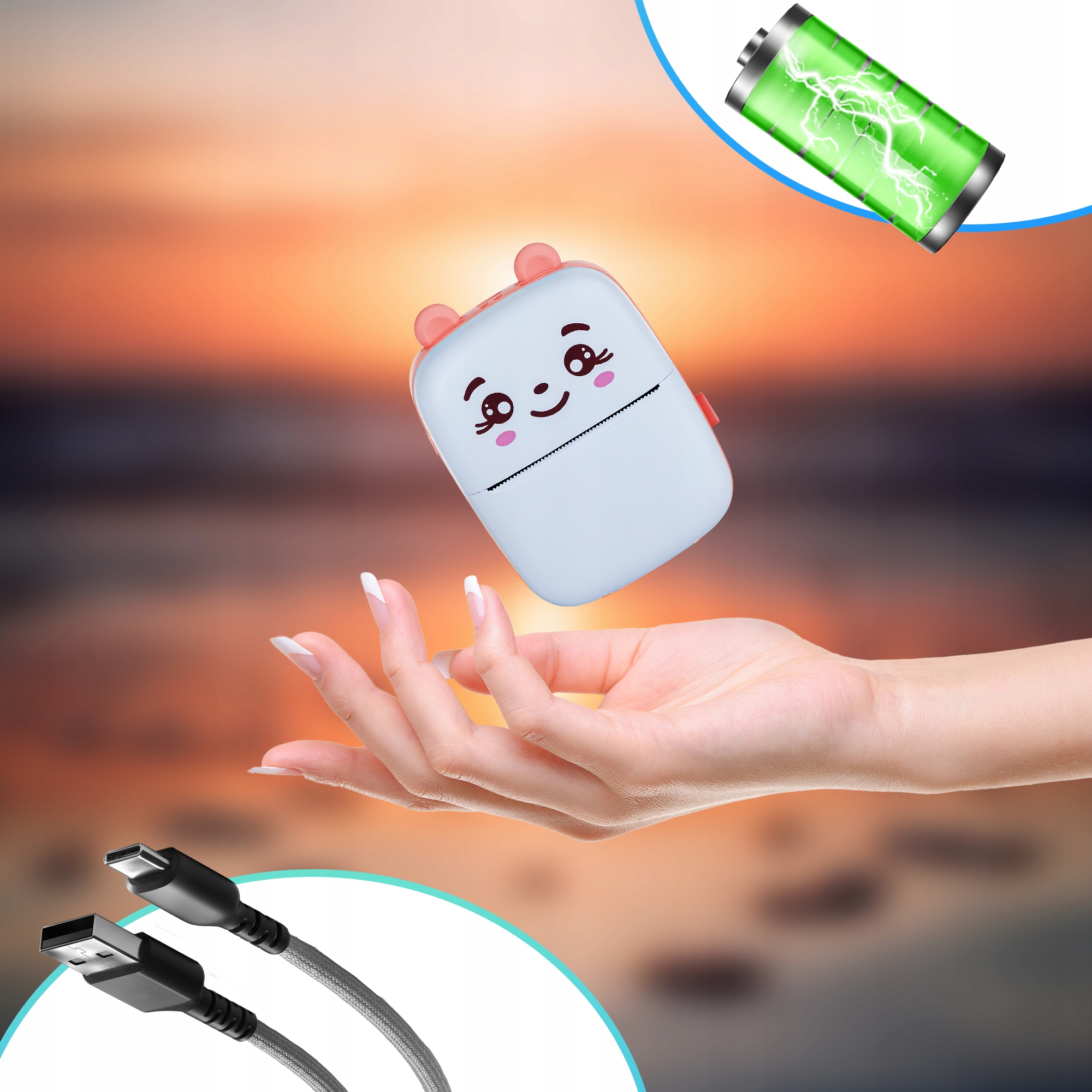Міні термопринтер - практичний і функціональний подарунок на будь-яке свято, особливо для найменших. Він ідеально підходить для персоналізації подарунків, створення альбомів, декорування блокнотів, друку логотипів компаній або створення етикеток і квитанцій. Друкує чорно-білі фотографії.