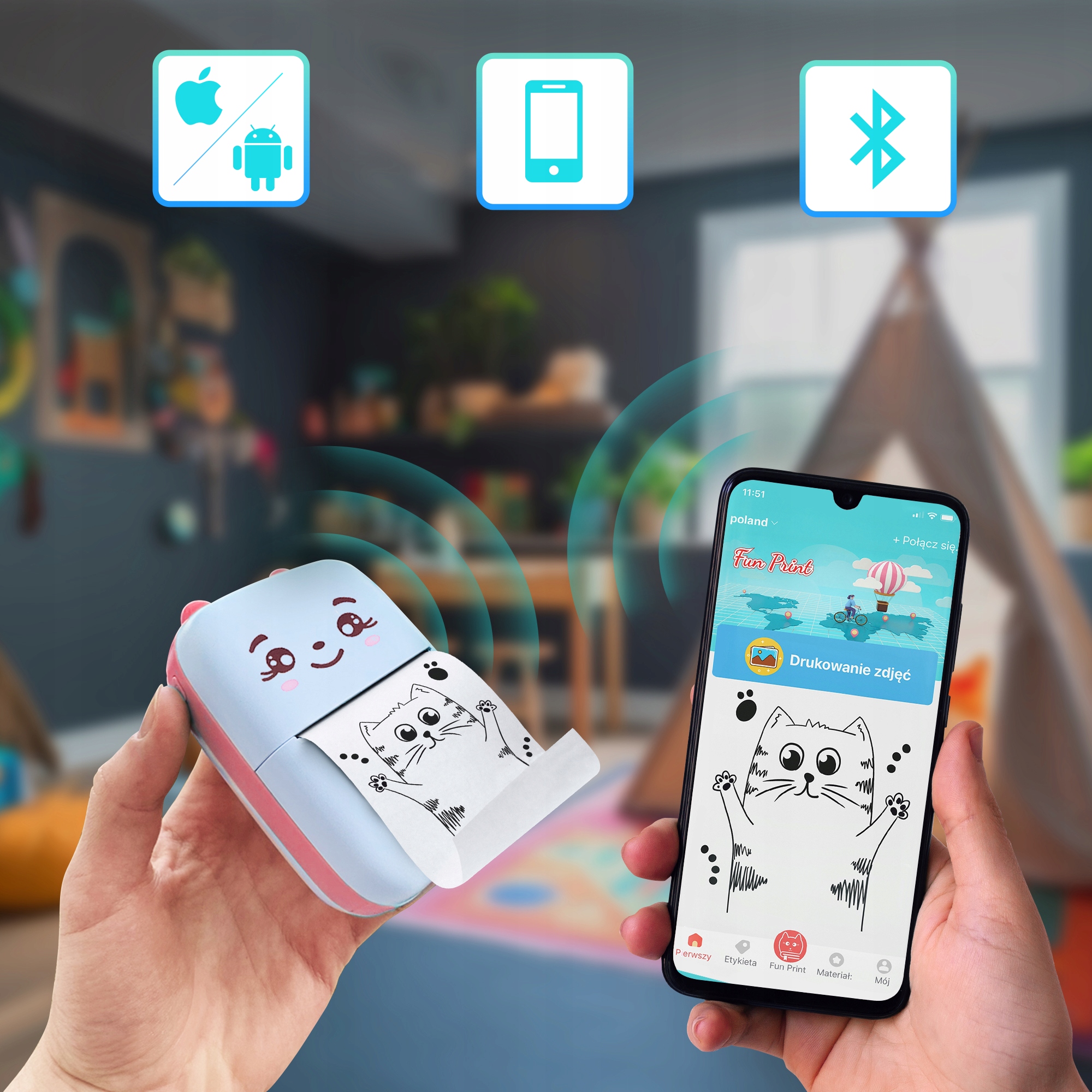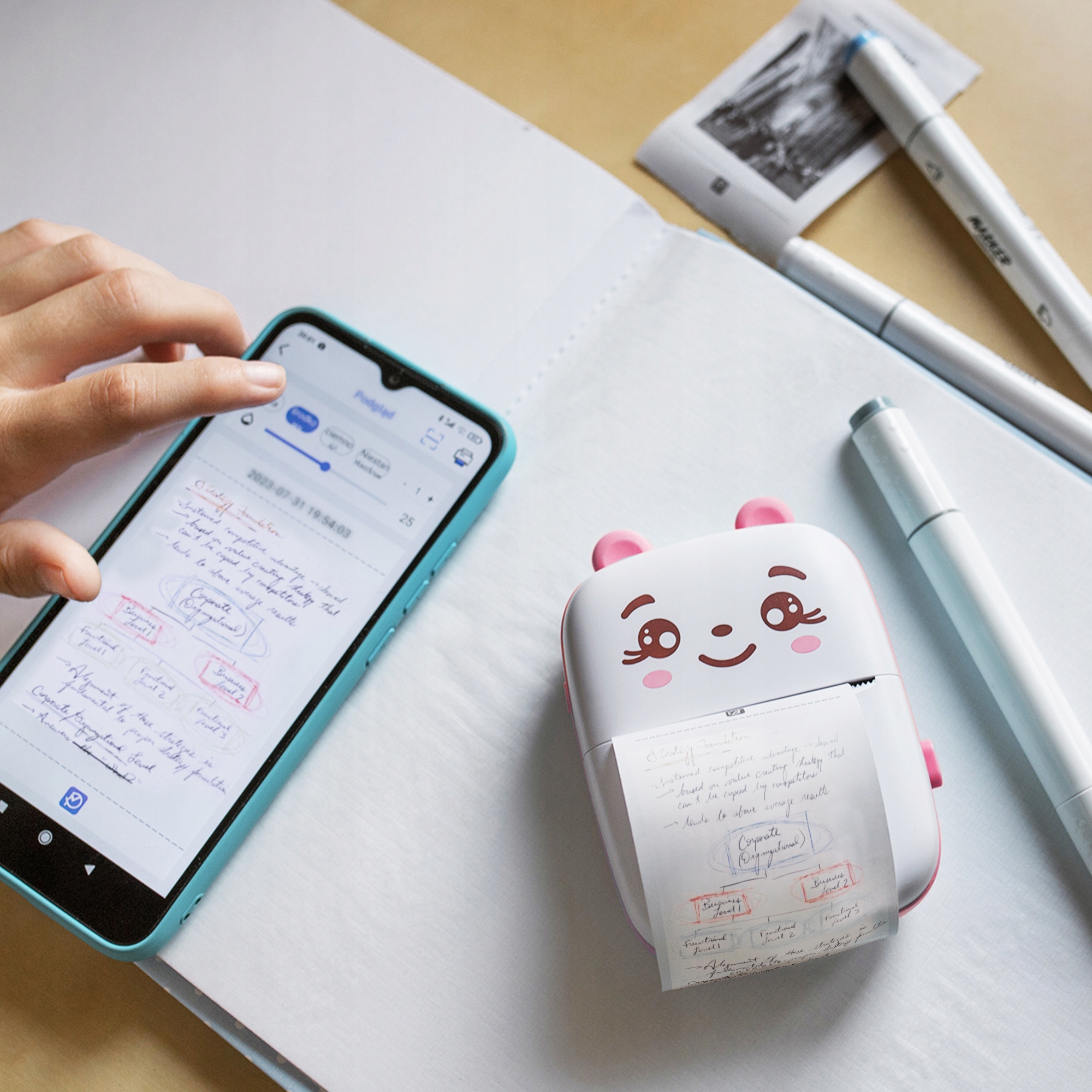 Цей міні-термічний принтер сумісний із iOS та Android, що дозволяє безперешкодно друкувати безпосередньо зі смартфона. Підтримує бездротове з’єднання Bluetooth, усуваючи необхідність підключати принтер до пристроїв за допомогою кабелів.