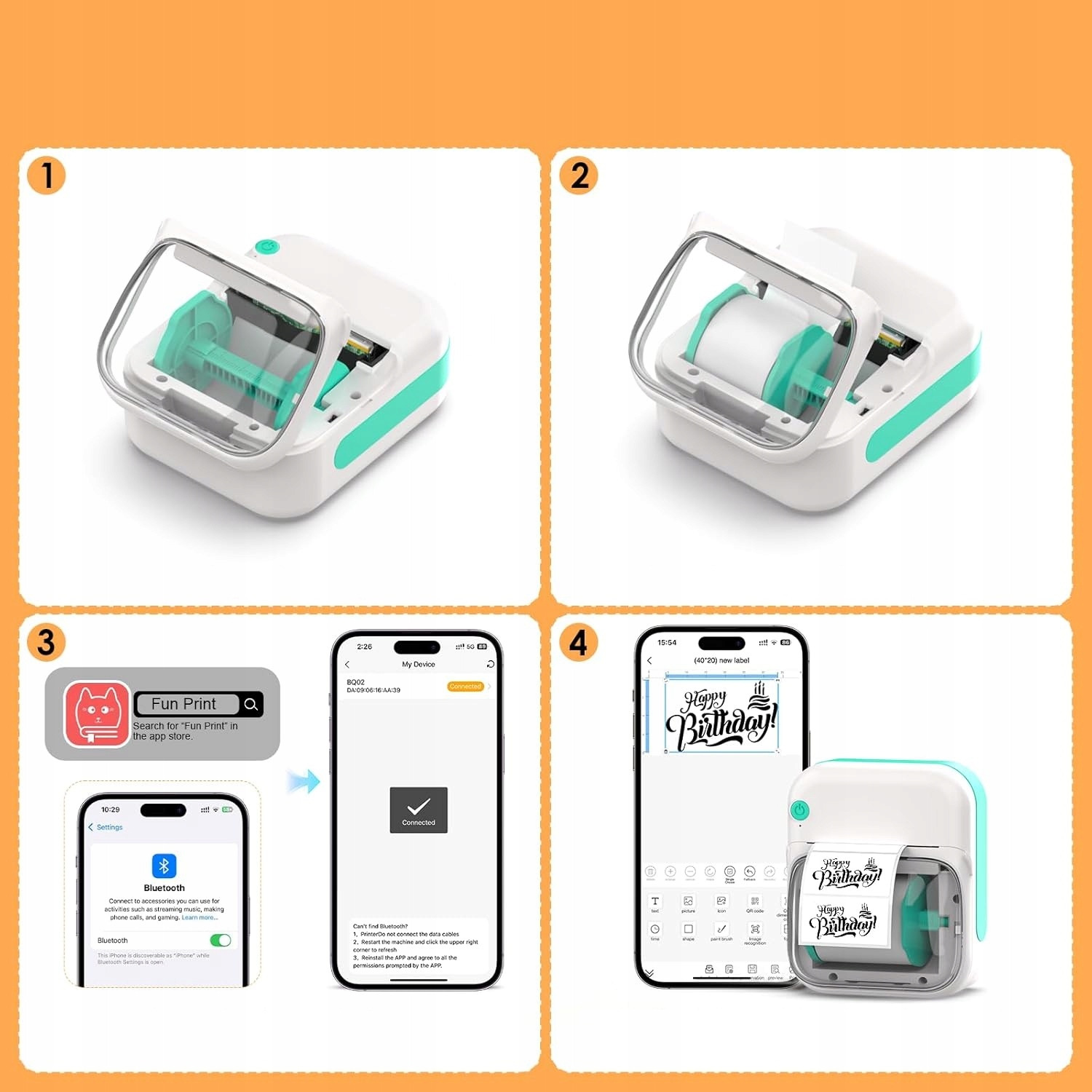 Просто завантажте безкоштовну програму Fun Print з AppStore або Google Play, увімкніть Bluetooth на телефоні та підключіться до пристрою однією кнопкою.