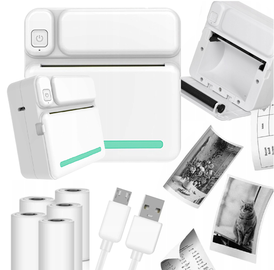 Міні портативний тепловий принтер для фотографій нотаток + безкоштовні валики