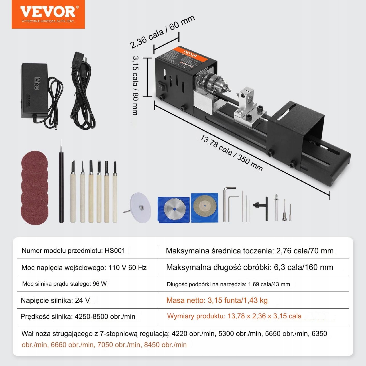 Міні-токарний верстат по дереву VEVOR компактний і портативний, ідеально підходить для домашніх проектів DIY. Потужний високочастотний двигун потужністю 96 Вт і 7 швидкостей відповідають різним вимогам до швидкості різання. Міні-токарний верстат постачається з повним набором аксесуарів, що дозволяє користувачам легко виконувати різноманітні роботи з деревини.