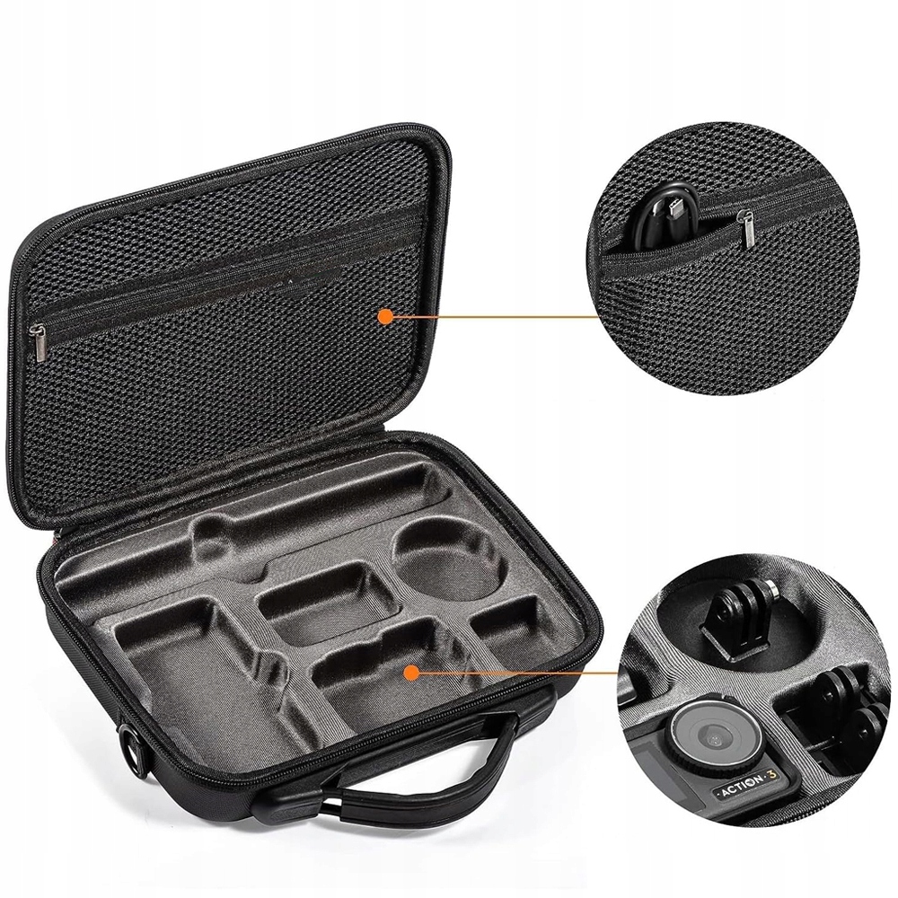 - Створено спеціально для екшн-камери Action 4 (сумісна з Action 3), точне формування, щоб ідеально розмістити всі ваші аксесуари.