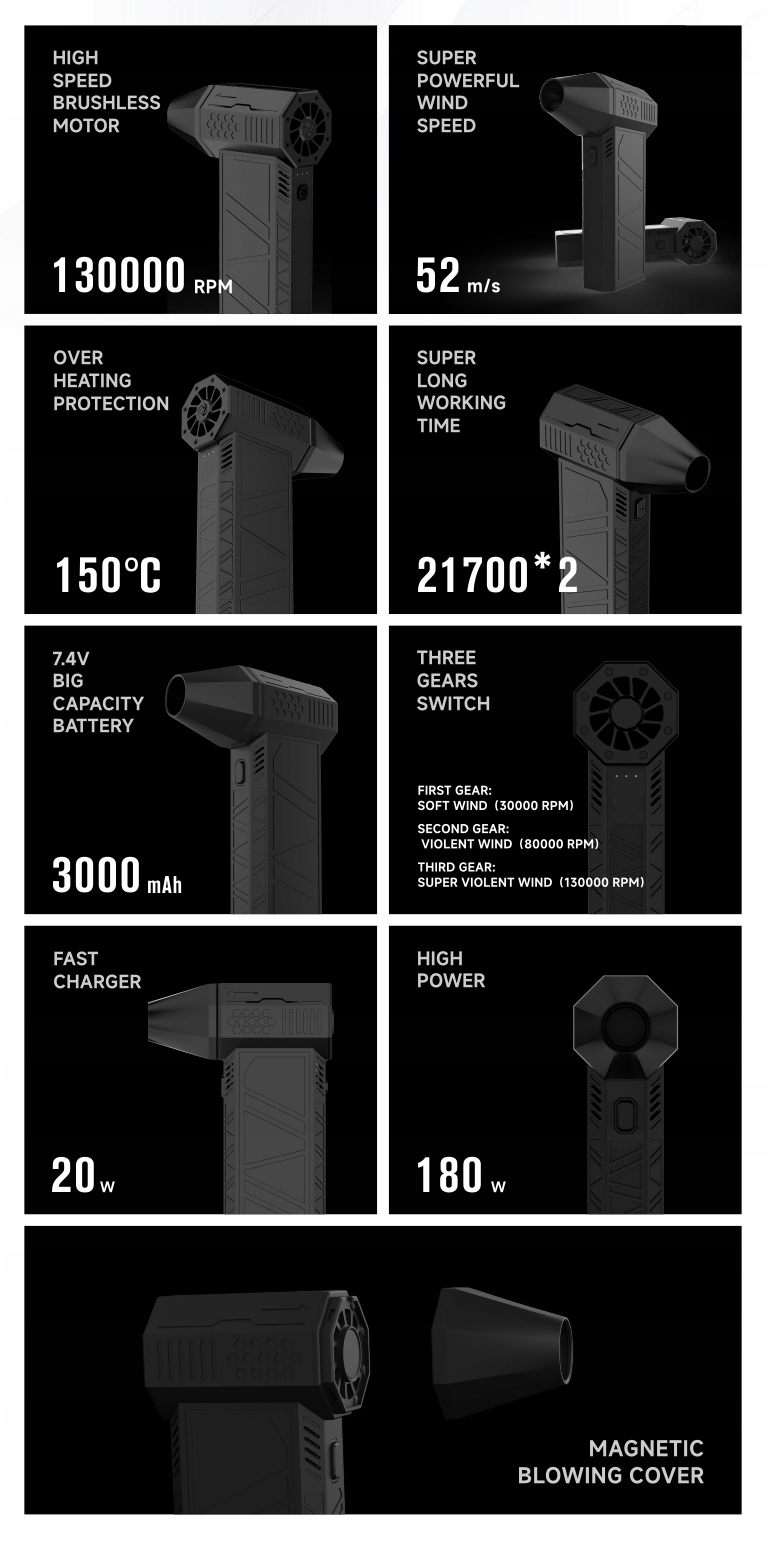 MINI TURBO BLOWER X3 130000 RPM СТИСЛЕНЕ ПОВІТРЯ + АКУМУЛЯТОР