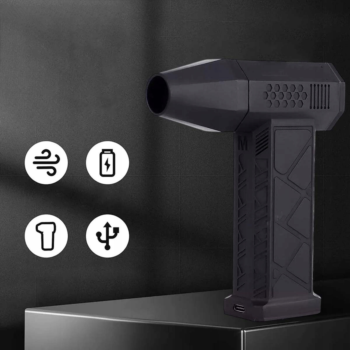 ✨thing до USStruction: Просто натисніть перемикач, щоб запустити потік повітря і сповільнити його, щоб зупинити його. Безщівний двигун портативного вентилятора Turbo забезпечує високу швидкість до 130 000 об / хв, а вбудований контролер живлення 30 A забезпечує управління рідиною та переміщенням швидкості. Потік повітря може бути адаптований до ваших власних уподобань. 4