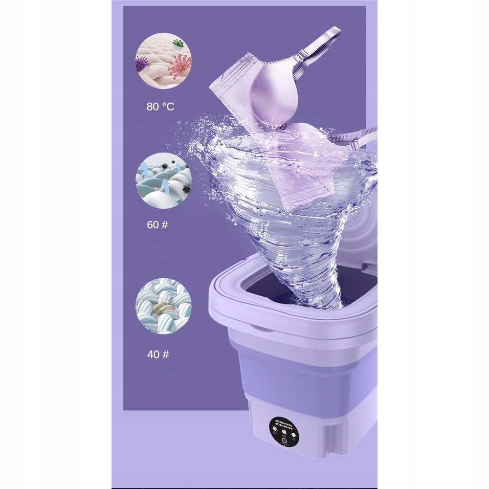 Мініавтоматична туристична пральна машина 9л, фіолетова, для кемпінгу
