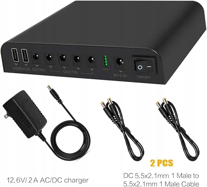 ✅ Широка сумісність: Він живляє маршрутизатори, модеми, світлодіодне освітлення, камери відеоспостереження, автомобілі, світлодіодні смужки та багато інших пристроїв з входом постійного струму 5,5x2,1 мм. 5.5x2.1 мм. У випадку інших роз'ємів необхідний адаптер (не входить).