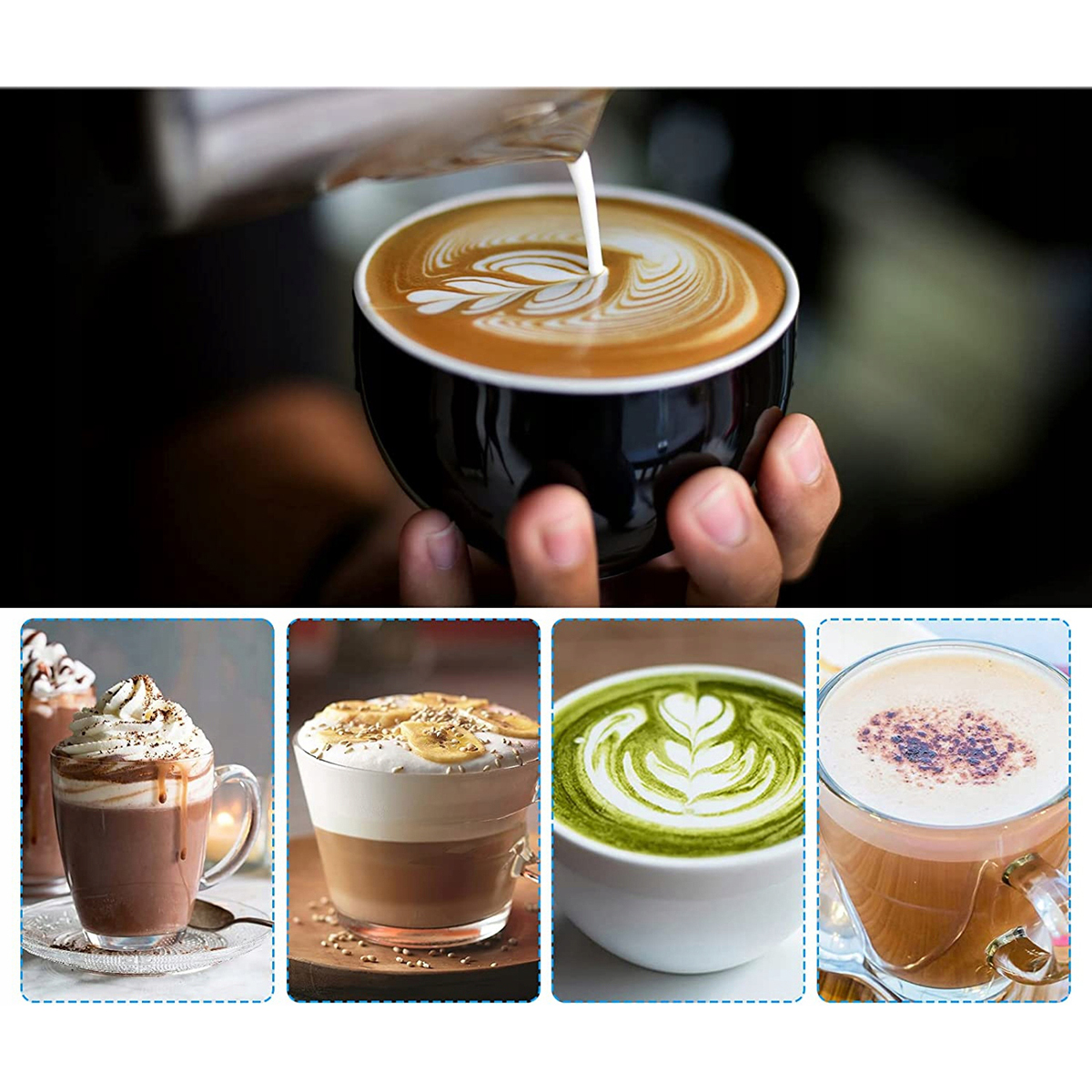-для вибору 2 швидкості, 8500 об/хв підходять для змішування яєць, молока, кави, чаю, білкових коктейлів та дитячого молока без грудочок, a 11000 об/хв може приготувати кремову кавову піну, латте, капучино, гаряче Шоколадки.
