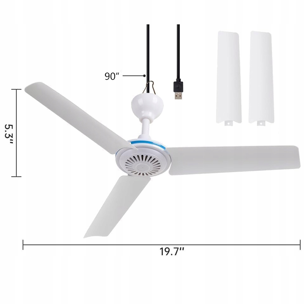 👍🏻Вентилятор на стелі з 5 лопатями, живлення від USB, тихий, для використання в кемпінгу, вдома, в інструментальній кімнаті.