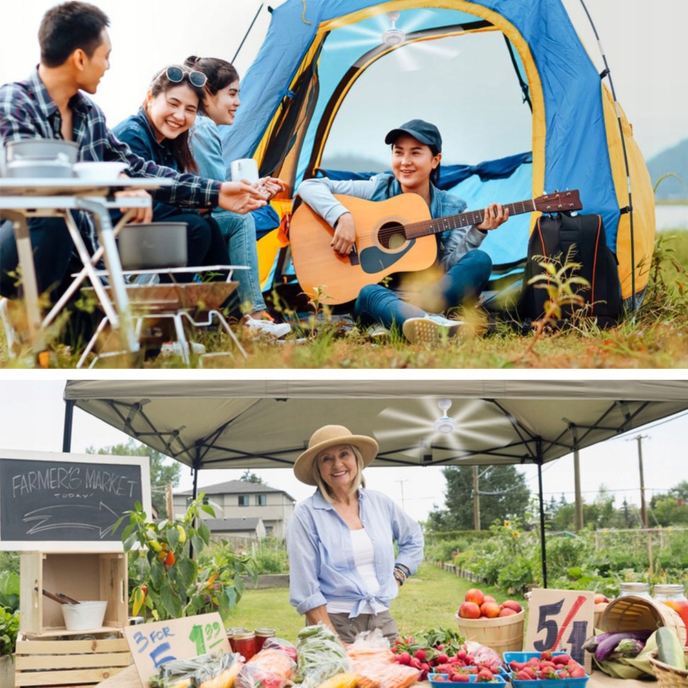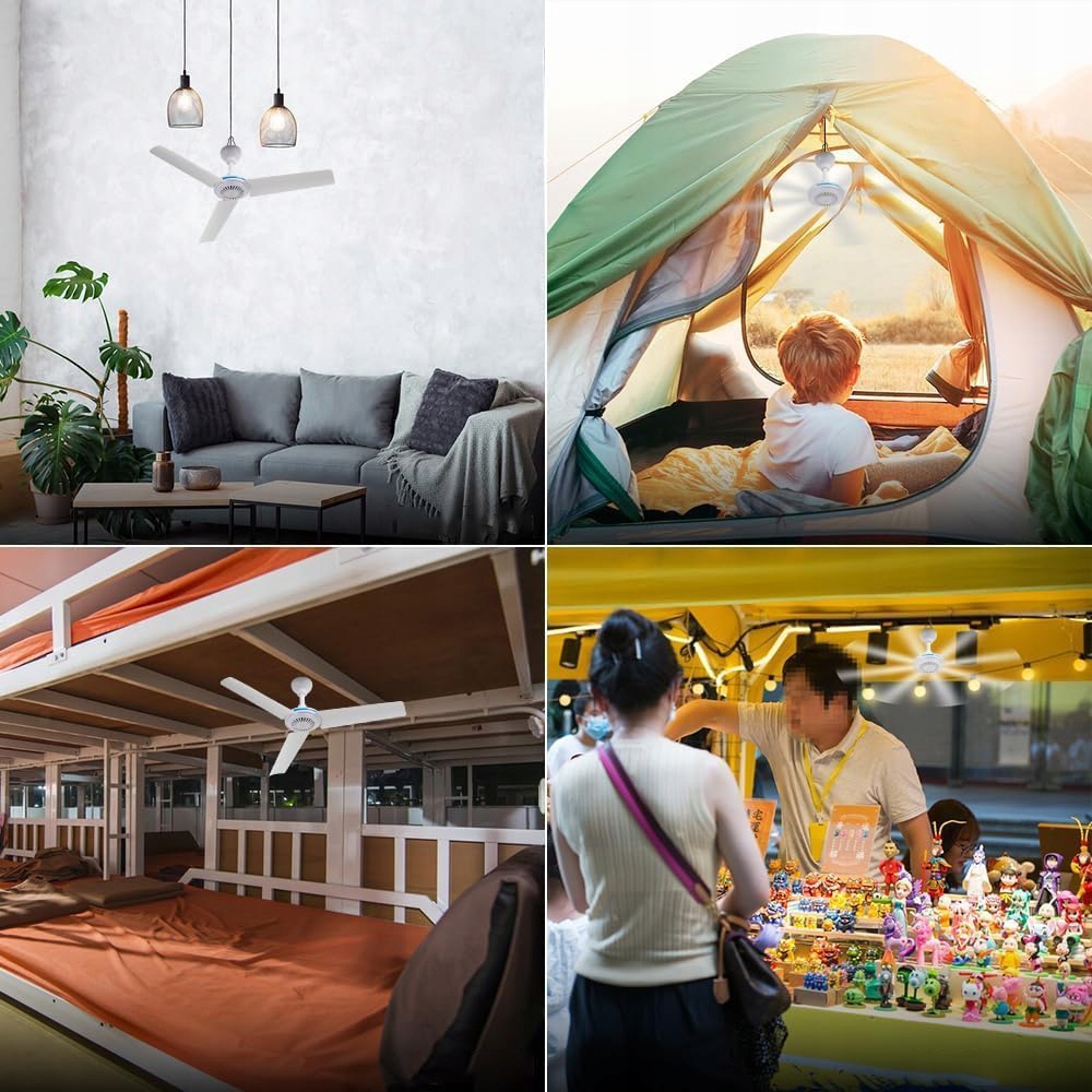 - 🍃【Широкі області застосування】: Великий вентилятор для подорожей можна використовувати для охолодження або прикраси під час таких заходів у спекотну погоду, як сонячні ванни та кемпінг. Маленький стельовий вентилятор підходить для спекотних літніх і безвітряних днів, також підходить для гуртожитків, відкритих кемпінгових наметів, інтер’єрів автофургонів, будинків, інструментальних кімнат тощо. (Дві додаткові лопаті вентилятора надаються як запасні)