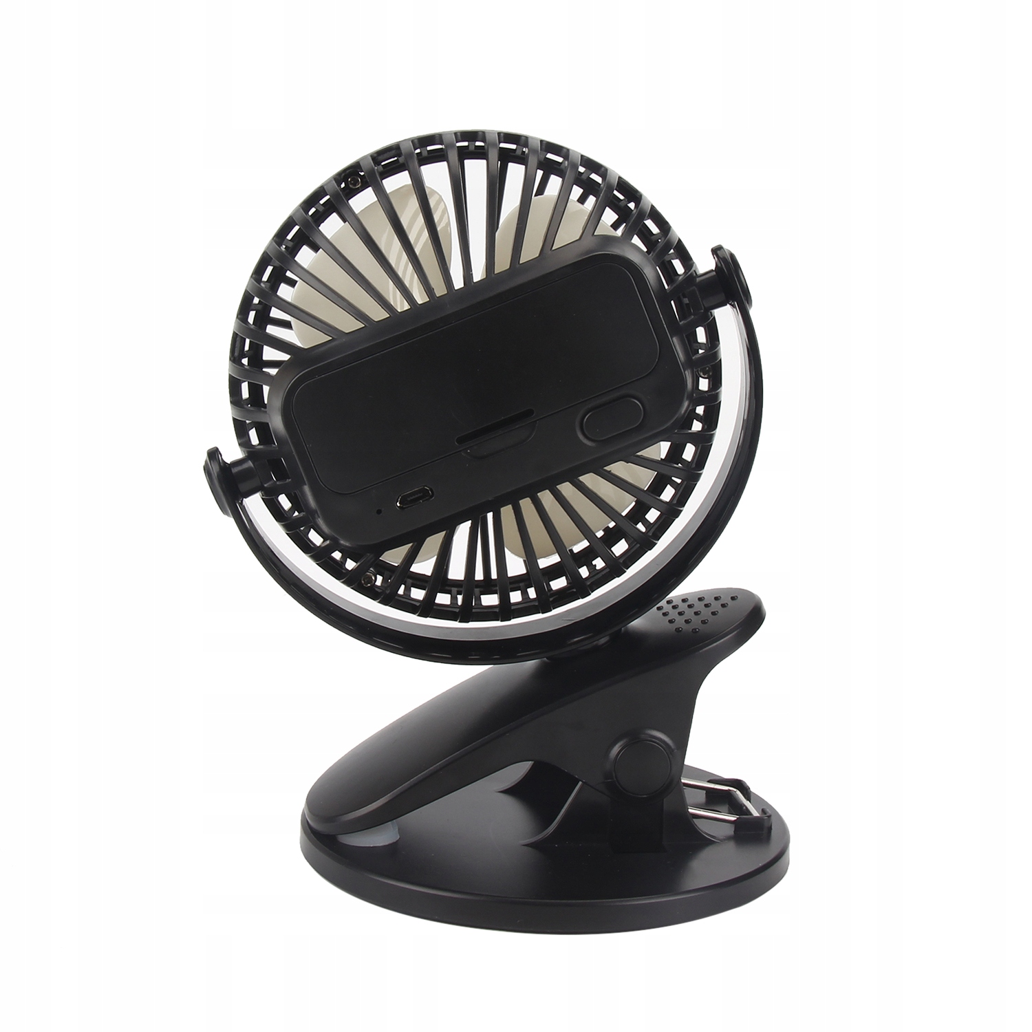 - Вентилятор із акумулятором має міцний затискач, який можна надійно прикріпити до столу, ліжка чи коляски.