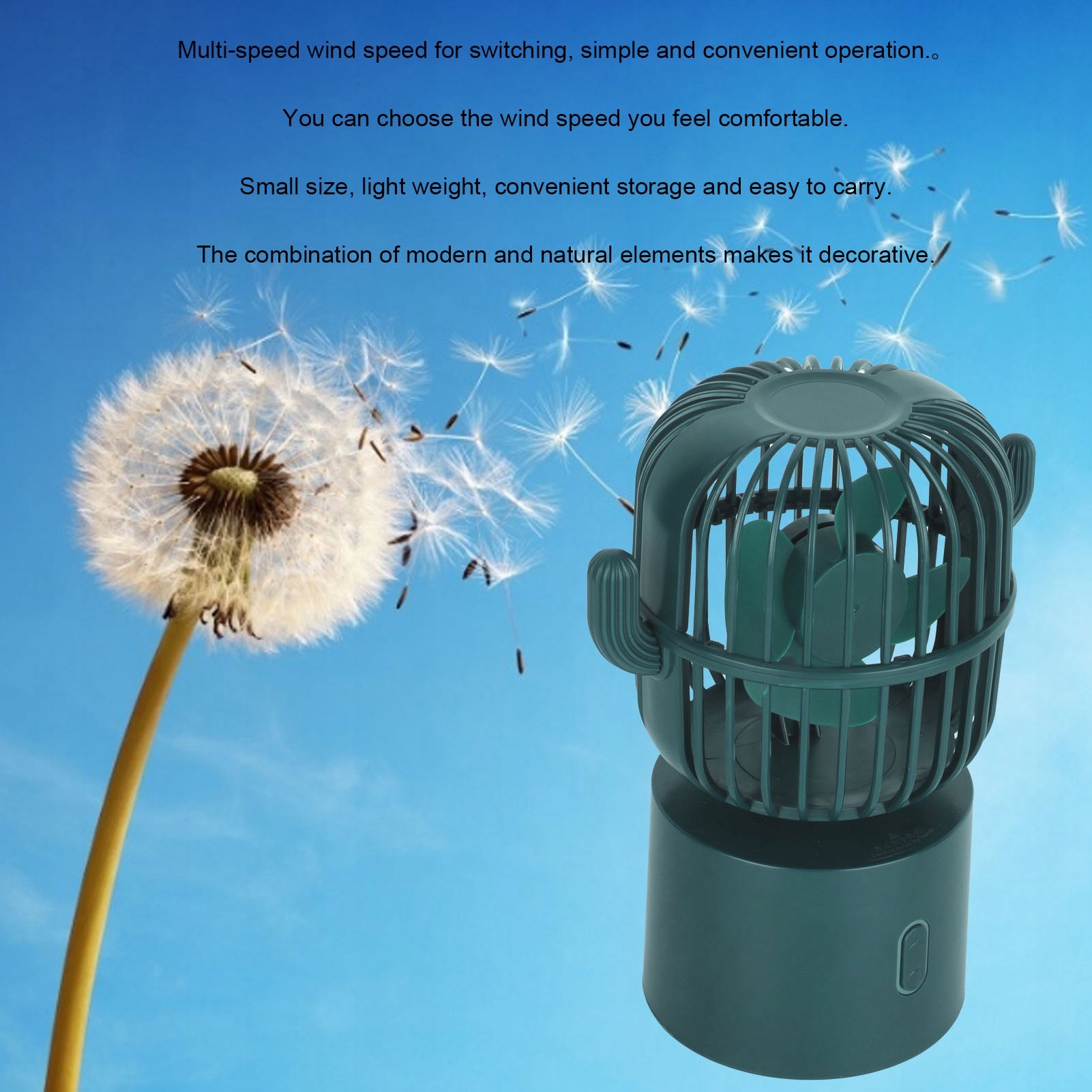 Міні вентилятор Кактус, що рухається головою USB Портативний робочий стіл Mini Fan 9R