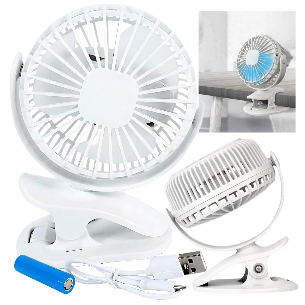 ☀️ВЕНТИЛЯТОР ІЗ ЗАЖИМОМ, СТОЯЧИЙ МІНІ-ВЕНТИЛЯТОР З ПІДСВІЧУВАННЯМ, БІЛИЙ ЗАРЯДЖЕНИЙ USB, 3 РІВНІ ПОТОКУ, ОБРАТНИЙ СВІТЛОД☀️