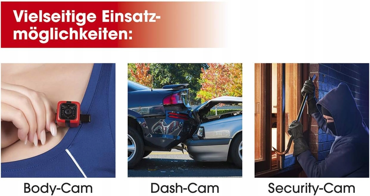- Багаті аксесуари дозволяють використовувати багато програм: завдяки кліпсі бездротову міні-відеокамеру EASYmaxx можна носити прямо на собі одягу, наприклад під час занять спортом, а настінне кріплення перетворює його на камеру спостереження вдома та як «реєстратор» у автомобілі