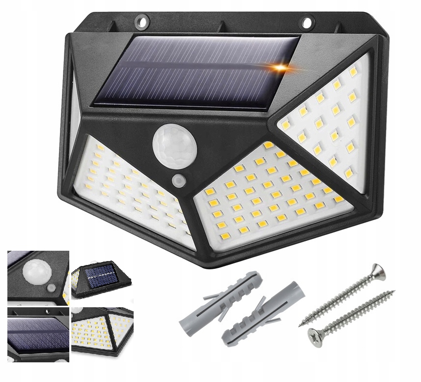 МІНІ СОНЯЧНИЙ ВУЛИЧНИЙ ЛАМПА 100 СВІТЛОДІОДІВ ДЛЯ НАСТІНИ, настінний, фасадні датчики