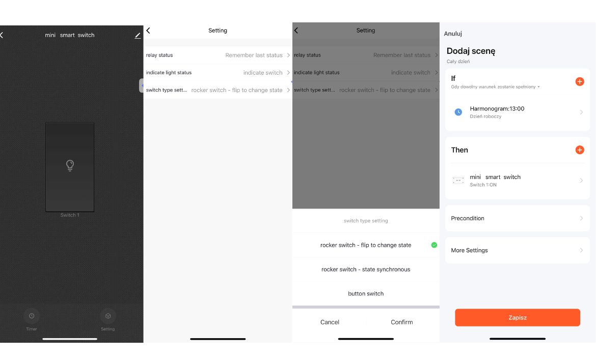 - Додаток працює в польській мові, ви можете додати та контролювати різні інтелектуальні пристрої