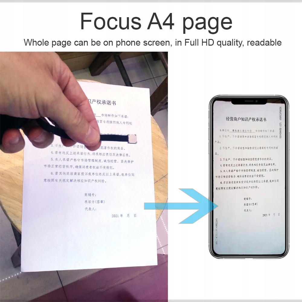 Примітка, що об'єктив камери включає всю сторінку A4- єдина така камера на Ринок! Кут погляду: 90 градусів