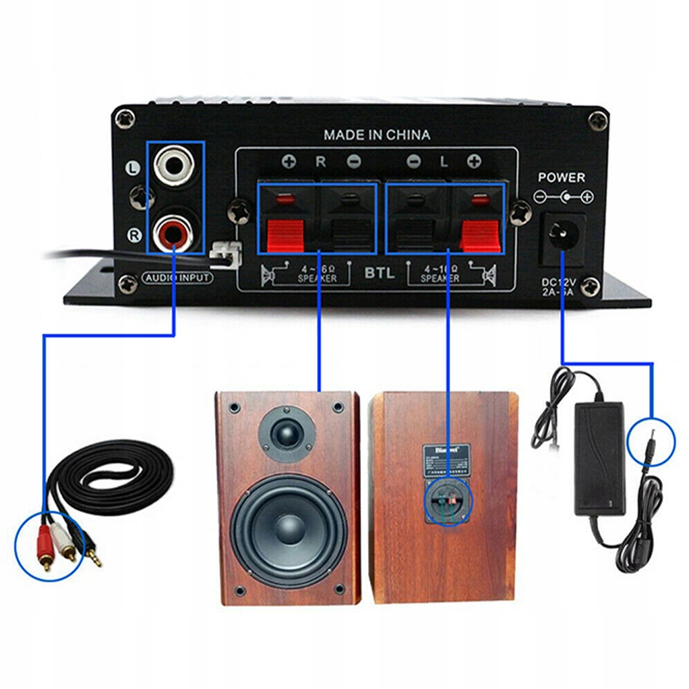 MINI WZMACNIACZ BLUETOOTH 5.0 MOCY AUDIO GŁOŚNIK HIFI STEREO AMP DLA DOMU