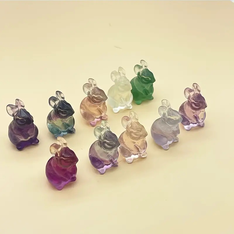 МІНІ ЗАЙЧИК З ФЛЮОРИТУ - ДЕКОРАТИВНА ПАСХАЛЬНА ФІГУРКА - МІНІАТЮРА