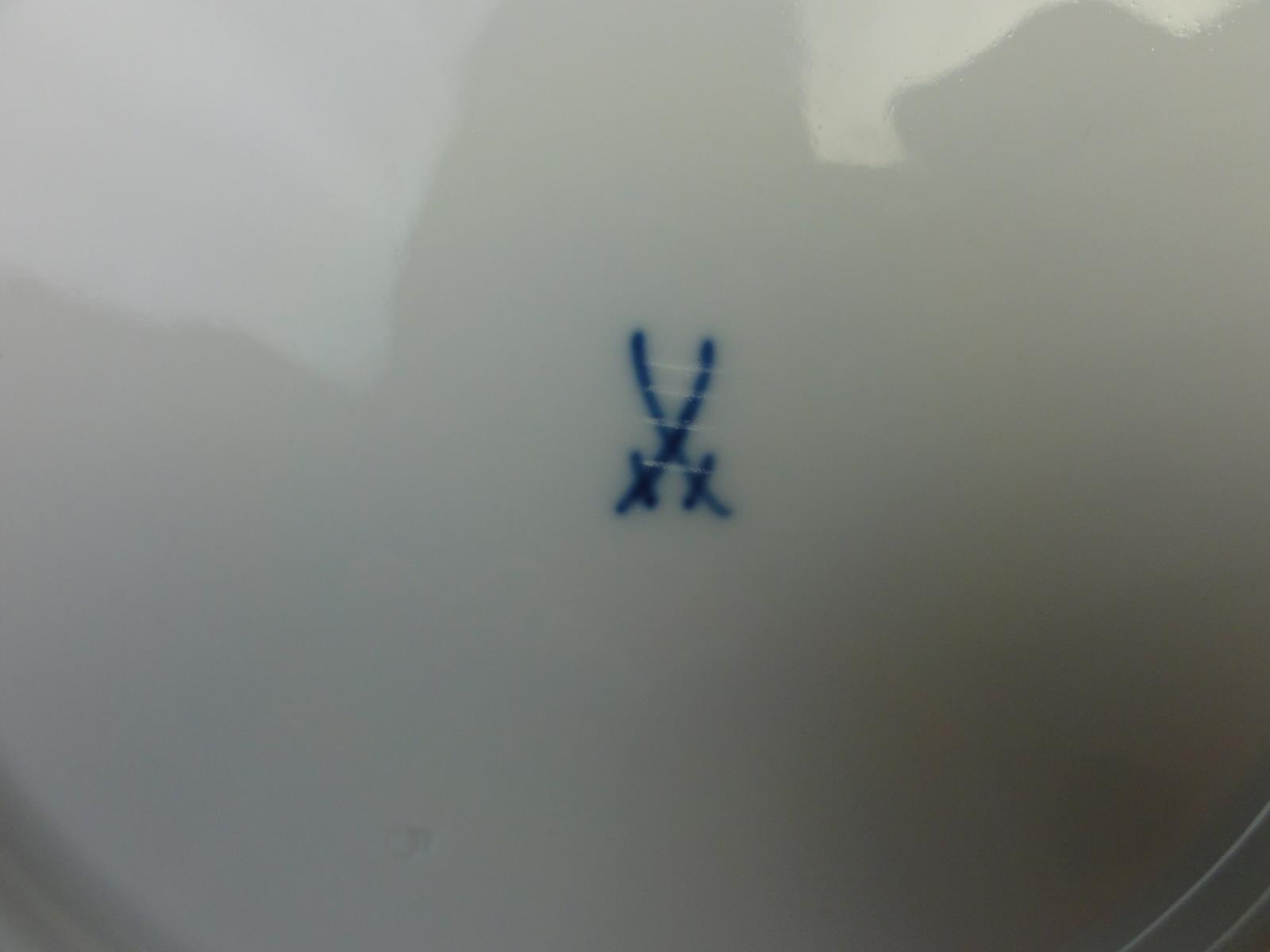 * підпис: Мейсен, мечі з чотирма насічками на блюдечку та тарілці, p>