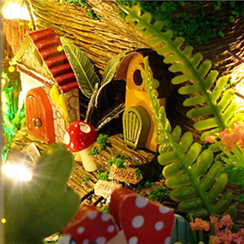 Miniaturowy domek Book Nook Zaczarowany las Magia Przyroda Kwiaty