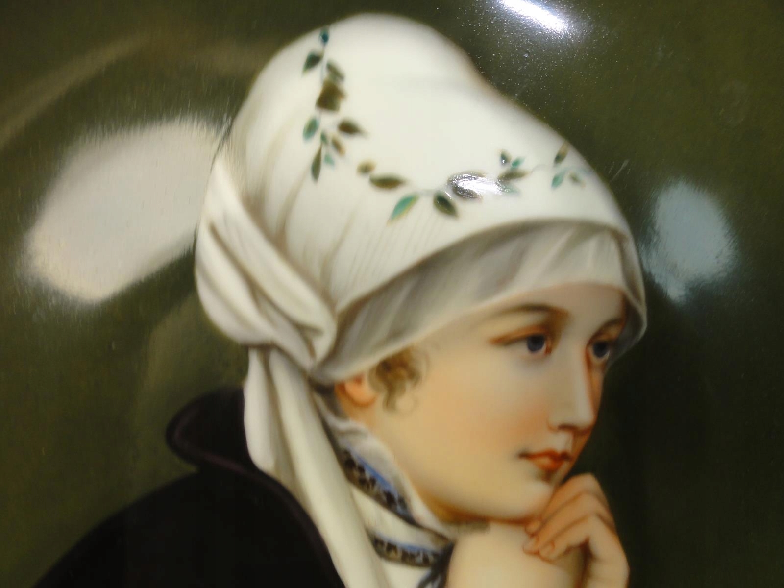 ****** Глибока тарілка з білого порцеляни, з портретом жінки, світильник, присвячений належним витягнутим підвіском,