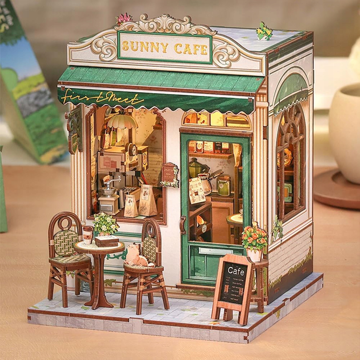 ⭐⭐⭐лялькові будиночки своїми руками, мініатюрний будиночок своїми руками, набір для дорослих, 3D дерев'яний пазл, форзац | Креативний набір для декорування полиці | Подарунок (Sunny Cafe) ⭐⭐⭐