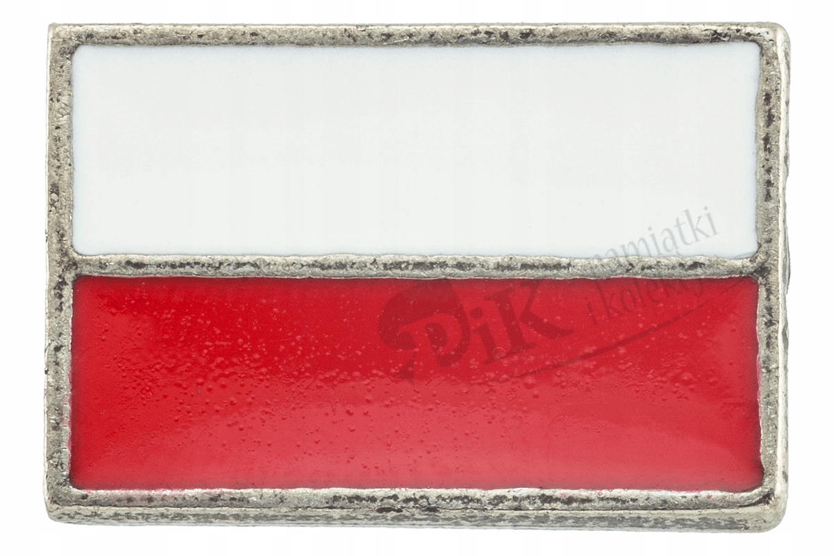 Мініатюрна шпилька з польським прапором. Кольори нашої країни — білий і червоний. Останній має відповідати кольору кіноварі, який був уточнений лише в 1927 році. У 1918-1927 роках національним кольором був більш темно-червоний - малиновий і схожий на цей колір амарант.