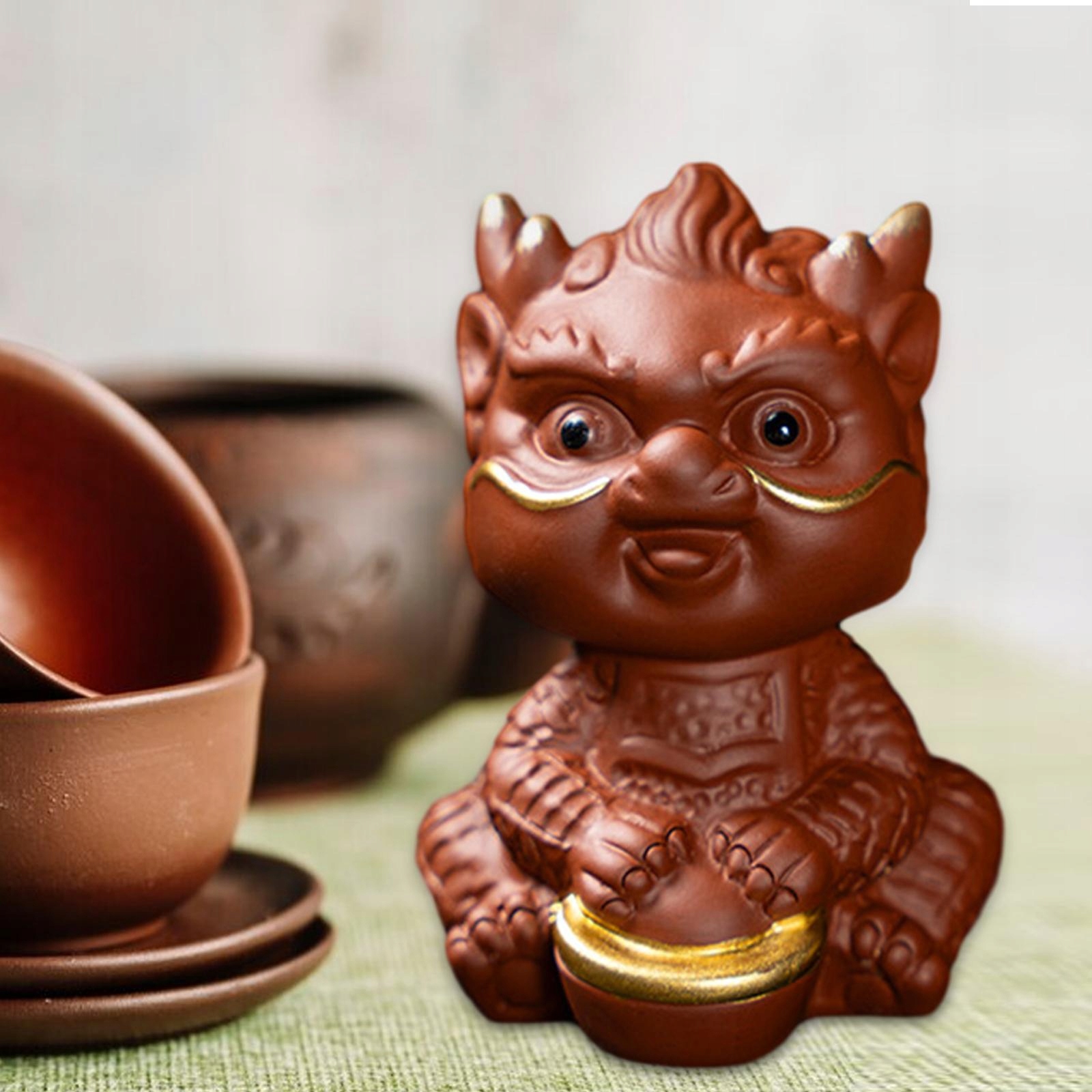 [Керамічний глиняний матеріал] Міні -дракон Фігура з китайського Нового року зроблена з керамічної глини, міцного та легкого в чистоті