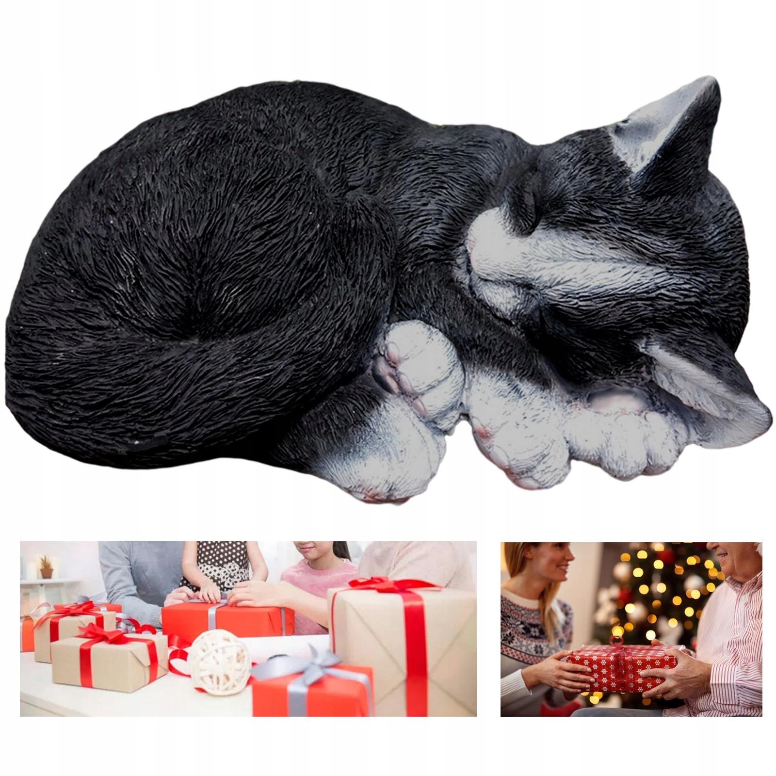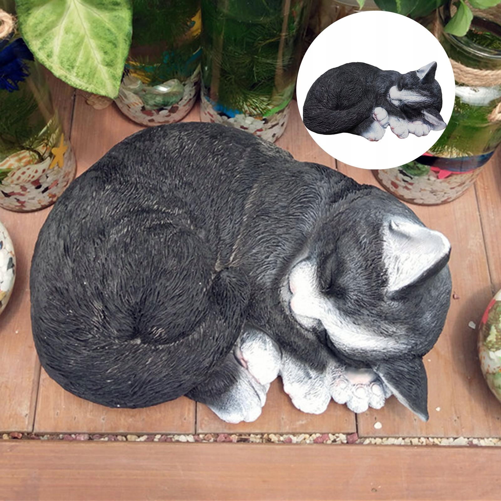 Красива мініатюрна статуетка сплячого кота, орнаментована фігурка для домашнього декору на задньому дворі, чорна